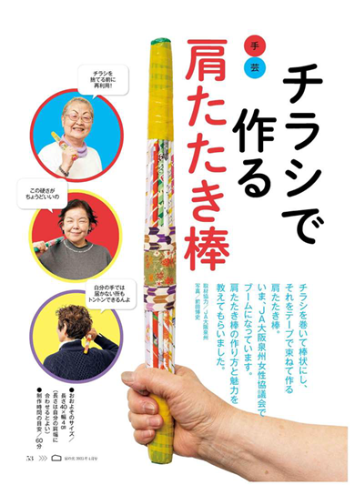 読者からの情報提供をもとに、2023年4月号に掲載した「新聞折込チラシで作る肩たたき棒」は、全国で話題を呼び、みんなで作ってJAのイベントや福祉施設などでプレゼントされました。また、「布ぞうり」は約20年前の記事をきっかけに全国へ広がり、農産物直売所や道の駅で販売されるまでになりました。創刊100周年記念企画では、布ぞうりを作って保育園に寄贈する活動を続けている93歳の読者を紹介しました。総じて、『家の光』読者はSDGsやエコ、防災など「地域社会をよくしていく」ことへの関心が高く、手芸記事を通じて販売したみつろうラップの作成キットは約3,000件、防災ブレスレットの作成キットは4万件以上の発注があり、その売上の一部は被災地への義援金として寄付もされました。